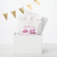 Les sacs de faveur comportent du texte personnalisé ainsi qu'un casquette rose et des bottes.