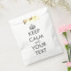 Facile à utiliser créez votre propre sac de faveur texte KEEP CALM ET PORTEZ-VOUS SUR mesure ! Entrez votre propre texte dans la ligne fournie. Cette version a une couronne et un texte gris.