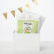 Merci privilégie les sacs pour un anniversaire avec une illustration de dessin d'un petit singe qui regarde derrière un buisson vert. Entouré d'une couronne de feuilles tropicaux. Situé sur un arrière - plan d'aquarelle vert olive.