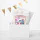 Les dinosaures sont aussi pour les filles ! Célébrez son 3ème anniversaire avec ce mignon bébé dino portant une couronne rose et portant un cadeau. Nom à personnaliser. Couleurs de ce joli design : rose et bleu.