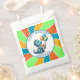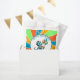 Adorable Personnalisée Soirée d'Anniversaire du Garçon favorise. Cute thème dinosaure en bleu, orange et vert. De mignons dinosaures caricaturaux tenant des ballons et un gâteau d'anniversaire. Ajoutez le nom et l'âge dans la zone personnalisée.