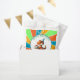 Adorable Personnalisée Soirée d'Anniversaire du Garçon favorise. Cute thème dinosaure en bleu, orange et vert. De mignons dinosaures caricaturaux tenant des ballons et un gâteau d'anniversaire. Ajoutez le nom et l'âge dans la zone personnalisée.