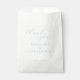 This elegant wedding favor bag features a minimalist design with a clean white background, perfect for conveying gratitude. The layout includes stylish cursive script for "thank you" and bold serif text for names, creating an inviting and sophisticated look. A simple line separates the names from the date, which is displayed in a clear sans-serif font, ensuring readability and balance. The monochromatic color palette of black and white adds timeless charm, making it ideal for formal occasions. Its refined aesthetic captures the mood of celebration and appreciation, suitable for weddings or special events.