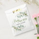 Simples, mais élégants sacs de baby shower faveur disposent feuilles d'eucalyptus vert et or avec une ligne de texte facile à mettre à jour.