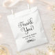 Les sacs de faveur de mariage sont dotés d'un design d'écriture décorative noir "Merci" avec monogramme personnalisé qui inclut les noms de mariée et de mariée et la date de mariage.