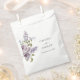 Elégant Lilac Wedding Favor Bag. Rendez vos faveurs de mariage encore plus spéciales avec ce sac de faveur magnifiquement conçu, avec de délicats lilas à l'aquarelle peinte à la main dans la lavande douce, le violet et le bleu, complété par une végétation luxuriante. L'élégante écriture ajoute une touche raffinée, donnant à chaque faveur l'impression d'un cadeau personnalisé. Entièrement personnalisable, vous pouvez ajuster le libellé, les styles et les tailles de police pour correspondre à votre thème mariage. Une façon parfaite de remercier vos invités tout en maintenant une esthétique cohésive et sophistiquée.