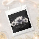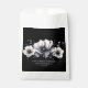 Cute and simple black and white flower wedding design. A classic but whimsical look with black, gray and cream colored flowers with white fonts and modern lettering. Edit all of the text to your own information. Great for a boho wedding with a modern twist, a winter or spring classic affair, or even a bit of a gothic vibe. Elegant Modern Boho Floral Black Wedding Favor Bag