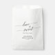Cet élégant amour de calligraphie noire est doux sacs de faveur sont parfaits pour un wedding shower simple. Le design neutre présente un sac de faveur minimaliste décoré de typographie romantique et fantaisiste. Personnalisez les sacs à gâteaux avec un message court, le nom de l'invité d'honneur, l'événement et la date. Ces sacs peuvent être utilisés pour une réception de mariage, une douche nuptiale, ou tout événement ou fête.