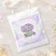 Jolie gâterie de baby shower de fille à thème d'éléphant en caricature violette.