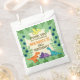 Sacs d'anniversaire de dinosaures mignons avec des dinosaures jaunes, bleus, oranges et violets sur un arrière - plan de feuillage vert. Ces sacs adorables ont aussi des modèles pour que vous puissiez ajouter vos propres détails pour la journée spéciale de votre enfant.