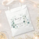 Ces sacs verts d'eucalyptus vert d'été merci mariage sont parfaits pour un mariage moderne. Le design présente de magnifiques feuilles d'eucalyptus verts peints à la main, inspirant le charme naturel. Customisez les sacs à gâteaux avec un bref message de gratitude, y compris vos noms et la date. Utilisez ces sacs pour compléter une réception de mariage, une douche nuptiale, tout événement ou fête. Le design sobre et élégant présente une typographie de script classique et sophistiquée en noir et blanc.