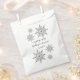 Utilisez ces Faux Silver Snowflakes Merci de mariage d'hiver Favoriser les sacs à votre classe Décembre, Janvier ou Février merveilleuse fête de fiançailles, douche nuptiale ou réception de mariage. Cet élégant mariage d'hiver personnalisé sacs de remerciement comporte des flocons de neige couleur argent avec un arrière - plan blanc. REMARQUE : Les flocons de neige ne sont pas un motif surélevé. Il s'agit d'un modèle de flocon de neige à imprimé plat.