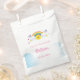 Cloud et Rainbow Enfants Anniversaire fête sacs personnalisés avec le nom et ou l'âge, nuages mignons et le thème arc-en-ciel, nuages souriants avec ballons colorés et étoiles dans les couleurs pastel et lumineux, ce design peut être utilisé pour les garçons et les filles