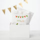 Cactus sac de faveur d'anniversaire, la fiesta et le plaisir. Drapeaux rouges et verts et un cactus souriant mignon comme décoration. Couleurs rouge et vert. Couleur arrière - plan blanche. Avec le texte : Fiesta et Fun et Merci! Modèle pour un nom.