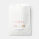 Remplissez ces mignonettes sacs de faveur avec douceurs et merci à vos invités de douche nuptiale dans le style chic parisien. Le design est "Merci" en lettres manuscrites roses peachy et une rangée de quatre délicieux macarons français dans les tons pastel rose, ivoire, jaune et bronzé. Customisez avec la mariée pour être le nom et la date de la douche dans la forme gris chic.