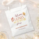 Typographie rouge, orange, jaune Sac de grâce personnalisé Thanksgiving avec le texte qui dit, "Feuilles d'automne et citrouille s'il vous plaît". Customisez facilement en ajoutant votre propre photo. Envoyez cette carte personnalisée Thanksgiving photo plat à vos proches.