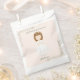 Communion Girl Prier Cette belle et douce première communion conception d'une petite brune priant paisiblement sur sa journée spéciale est sur une pêche pâle et arrière - plan sage. Accentué par un cadre feuille fleur sauvage. Chérissez les grands souvenirs de la première communion sainte de votre enfant avec ce magnifique design. Consultez les accessoires, la papeterie et les cadeaux de communion de la Première Sainte Communion correspondants.