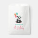 Ce sac de faveur pour anniversaire de enfant mignon et amusant comporte un ours de panda de fête, avec un casquette de fête et des ballons roses, orange et turquoises. Le sac fournit des espaces pour ajouter le nom et l’âge de votre fille dans un script minimaliste et moderne. Parfait pour l'anniversaire de n'importe quel amant de panda, idéal pour un 5ème anniversaire, mais entièrement personnalisable pour s'adapter aux amoureux des animaux plus âgés ou plus jeunes de la jungle.