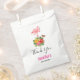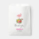 Sacs de faveur avec une illustration numérique mignonne représentant un flamant rose avec une patte levée. Debout sur un bouquet de fleurs et de feuilles d'hibiscus tropical. Un joli papillon voltige autour des fleurs.