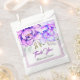 Ce charmant sac Favor de mariage apportera une touche parfaite à votre journée spéciale. Il présente un bel arrangement floral en fleurs d'aquarelle violette et bleue et en feuille sur la partie supérieure, ainsi que l'expression "Merci" écrite dans une police de caractères stylisée et les noms des jeunes mariés. Il y a une frontière lilas autour de l'avant. Ce sac est le moyen idéal pour exprimer votre reconnaissance à vos invités et les remercier de faire partie de votre journée spéciale.