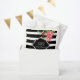 Elégantes rayures noires et blanches avec fleurs exotiques roses et rouges. Modèle de sacs de faveur personnalisables