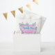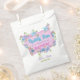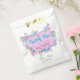 Elégante fête d'anniversaire "Merci" préférez le sac avec des fleurs d'aquarelle rose, bleu et violet et des tourbillons verts encadrant un morceau de parchemin pour votre texte. Joli, coloré, design girly, parfait pour la fête d'anniversaire fleurie du printemps/été.