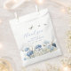 Blue Hydrangeas & Butterflies Fête des mariées merci pour les sacs de faveur avec "merci" dans la police de calligraphie moderne. Ce design est parfait pour "Il me donne des papillons", "Une vie de papillons" ou "Quelque chose de bleu" thèmes de douche nuptiale.