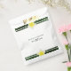 Ce design présente des fleurs Frangipani/Plumeria jaunes. Un design tropical élégamment encadré de fleurs frangipaniennes jaunes et de verdure feuillue. Les noms de la mariée et du marié sont soulignés avec la couleur verte assortie des feuilles. Conception de sac de mariage tropical avec des éléments modernes. Des invitations de mariage et d'autres articles de papeterie sont également disponibles.