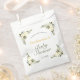 Thank your family and generous guests at your baby shower by offering them a thank you favor with this fresh and pretty baby shower favor bag. These favor bags for baby shower feature a design with a lovely bouquet of elegant pastel yellow roses with green botanical leave in each corner. Personalize these yellow floral favor bags with your first name, the date of your event, a thank you, and the name of your event such as a baby shower, baby sprinkle, or a gender reveal. So fresh and pretty for spring and summer.
