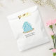 Un joli design avec un gâteau bleu à trois niveaux mariage avec des fleurs et des accents de ruban. Customisez en ajoutant les noms et la date selon vos besoins.