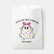 Ajoutez un peu de plaisir rétro à vos cadeaux d'Halloween avec cet adorable sac cadeau de fantôme super ! Doté d'un joyeux petit fantôme recouvert d'une feuille fleurie colorée, de panneaux de paix clignotants avec les deux mains et surmonté d'un grand arc rose, ce design dévoile un charme vintage avec une touche ludique. Parfait pour les enfants, les camarades de classe, les faveurs de la fête, ou le tour ou le traitement de quartier, le sac peut être customisé avec le nom de votre enfant ou l'accueil de la famille. Une façon douce et élégante de répandre des sourires cette saison éffrayante !