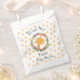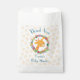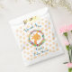 Merci préférez les sacs pour une douche ou un anniversaire. Conçu avec l'illustration d'un joli visage de girafe souriant, entouré d'une couronne de fleurs tropicales d'aquarelle. Coloré et mignon. Arrière - plan est un motif défraîchi avec des taches oranges.