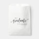 Un élégant sac de remise de diplômes moderne. Ces sacs de faveur de la fête de remerciement ont un thème simple noir et blanc avec une police de script élégante. Ajoutez le nom des diplômés et le lycée ou l'université pour le sac de faveur de la fête de graduation personnalisée parfaite.