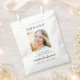 Des funérailles somptueuses et modernes nourrissent le sac de semence d'oiseaux pour célébrer la mémoire de votre être cher dans un style moderne minimaliste sur un arrière - plan blanc propre simple. Le design peut être facilement personnalisé avec votre propre photo et texte pour créer un hommage spécial pour les funérailles, le mémorial ou la célébration de la vie de votre être aimé. L'image montrée n'est à des fins d'illustration que pour être remplacée par votre propre photo. L'image de l'espace réservé est celle d'une belle femme heureuse aux cheveux blonds ondulés. Veuillez noter que les graines d'oiseaux sauvages ne sont pas incluses - vous devrez acheter des graines d'oiseaux ou de fleurs pour mettre dans le sac de faveur. Si vous avez besoin d'aide pour personnaliser ce produit, veuillez me contacter en utilisant le bouton de message et je serai heureux de vous aider.