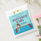 Ce mignon sac de fête d'anniversaire de gymnastique de filles présente une jolie brune fille de gymnastique debout devant un poutre. Elle porte un leotard rouge et sourit aux invitations pour sa fête amusante avec des enfants en train d'agiter au gymnase local. Beau cadeau personnalisé bleu pour votre petite fille.