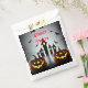 Éffrayant Traitements privilégient sac avec Jack-o'-lantern Déplaisant et chauves-souris volantes pour votre décor de table de fête d'Halloween. Design propose une scène nocturne avec des citrouilles sculptés au premier plan avec des bâtiments sorciers en arrière - plan et des chauves-souris volant dans le ciel nocturne. Partie de la collection Déplaisante Jack 'o Lantern. Le libellé peut être modifié à votre gré à l'aide des onglets "Personnaliser ce modèle" ou "Modifier la conception". En utilisant l'onglet "Modifier la conception", vous pouvez modifier le style, la taille et la couleur de la police. Joyeux Halloween !