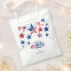 Ce sac de faveur brillant présente un design amusant de fête de l'Indépendance des étoiles rouges, blanches et bleues décoratives dans un arc gracieux sur une belle calligraphie qui dit "Happy 4 juillet". Parfait pour les fêtes de queue et les barbecues pendant que vous fêtez l'occasion. Cherchez ID1103 pour voir tous les produits de coordination avec ce design gai.