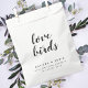 Simples et élégants "inséparables" jour de mariage privilégient sac dans un style design minimaliste moderne avec une typographie manuscrite en noir et blanc classique écrit dans un style décontracté informel. Le texte peut facilement être personnalisé pour un design unique et unique pour votre journée spéciale. Un mariage parfait pour les amoureux de la nature et des oiseaux (graines d'oiseaux sauvages non incluses) !