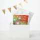 Ce design exquis est un merveilleux pays d'hiver miniature imprimé sur un sac blanc et croustillant. L'arrière - plan est un dégradé lumineux de rouge festif et de vert citron chaud, parsemé de lumières scintillantes de bokeh en or qui dansent comme un millier d'étoiles minuscules. Au coeur de l'image se trouvent trois ornements de Noël 3D réalistes accrochés à des fils d'or. Elles ont une touche moderne sur les couleurs classiques : une avec des rayures vertes et blanches, une brillante en or et blanc et la plus grande avec des rayures rouges et blanches audacieuses et réfléchissantes. La surface polie de ces ornements donne au design une sensation vraiment premium et dimensionnelle. Le salut "Joyeux Noël" est audacieusement centré sur un riche script rouge saisonnier. En dessous il y a un espace dédié à la personnalisation, prêt pour votre nom de famille ou message spécial, faisant de chaque sac un souvenir unique et précieux.