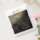 Optez pour un look éblouissant, éblouissant et glamour en utilisant les pièces de cette suite mariage comme indiqué, avec des bijoux en cascade des feuilles de palmiers incrustés de diamants ou supprimer les couches de bijoux pour un look un peu plus conservateur. Cet ensemble présente des feuilles en or chatoyant contre un arrière - plan texturé de la couleur riche du café noir. Le sac de faveur "Love & Thanks" mariage montré ici a une bordure de feuilles pétillants, une police serif élégante avec le nom de la mariée et du marié et la date du mariage. Entrez facilement vos propres informations de mariage en utilisant le modèle fourni. Affichez le lien de collection sur cette page pour voir tous les éléments correspondants dans ce bel ensemble ou recherchez ID830 pour voir d'autres options de couleur pour cette conception.