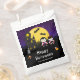 Ce sac de faveur amusant et éffrayant présente de mignons vampires à côté d'une maison hantée tordue. Dans l'arrière - plan est une pleine lune avec des chauves-souris et un ciel de nuit violet avec des étoiles. Le texte combine les polices décoratives et serif pour un look élégant et moderne. C'est parfait pour une fête d'Halloween.