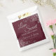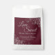 Ces beaux sacs de faveur sont simples, élégants et beaux. Elles présentent un design élégant et élégant, avec des lettres en gris élégant et des boucles en dentelle gris argenté et des tourbillons sur un arrière - plan bordeaux, marron ou rouge vif. Le texte dit : L'amour est doux, s'il vous plaît prenez un régal! Il y a de la place pour vos noms et la date du mariage ci-dessous. Merveilleuse et réfléchie façon de remercier vos invités pour la célébration avec vous.