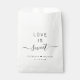 Sacs de faveur blanc chic pour vos invités mariages avec "L'amour est doux" dans une typographie moderne simple et un script élégant avec des swashes, vos prénoms unis par un coeur et votre date mariage.