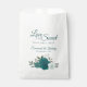 Ces beaux sacs de gâterie sont parfaits pour une table de régal à votre réception de mariage. Elles présentent un joli design boho chic avec un ensemble de roses aquarelles peints à la main dans les tons turquoises, turquoise et aqua. L'élégant texte du script dit "L'amour est doux s'il vous plaît prenez un plaisir" avec la place pour les noms du couple et mariage date.