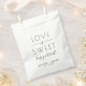 L'amour est doux, régalez-vous ! Ces sacs à gâteaux simples et modernes san serif noir & blanc sont parfaits pour vos invités à une mariage, douche nuptiale, baby shower ou fête d'anniversaire pour rapporter quelques friandises (bonbons, beignets, biscuits, pop-corn) après la fête. Personnalisez facilement avec votre nom, événement et date.