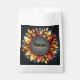 Plongez dans l'élégance de l'automne avec ce Vibrant Saison Feuilles d'automne Thanksgiving Favor Bag! Un arrière - plan au charbon de bois profond spectaculaire présente une couronne radieuse de feuillage stylisé, éclatant d'oranges flamboyantes, d'or moelleux et de rouges chauds. La pièce maîtresse est un emblème circulaire gris foncé et chic pour la personnalisation, avec "Bon thanksgiving" dans un élégant script orange doré, ainsi que l'espace personnalisable pour votre nom de famille et l'année. C'est une toile miniature de la beauté de l'automne, prêt à rendre votre personnage Thanksgiving favors élégamment mémorable.