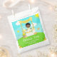 Ce mignon et fantaisiste sac de faveur dispose d'un fils à cheveux noirs avec peau foncée sur un stand de limonade jaune qui est décoré de fleurs et de bouts. Dans l'arrière - plan est un ciel bleu, soleil et papillons. Le texte combine les polices décoratives et sans serif pour un look élégant et moderne. C'est parfait pour un anniversaire d'été. Graphiques de MUJKA
