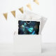 Deux libellules transparentes, lumineuses, turquoise, artistiquement dessinées sur l'arrière - plan de nuit avec des algues luminescentes et des lucioles. libellule éclatante.
