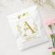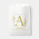Sac de faveur élégant avec cadre botanique dessiné à la main en or avec la lettre botanique A au centre. Personnalisez avec le nom du couple et la date ou un message personnalisé,