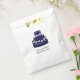 Un joli design avec un gâteau bleu marine à trois niveaux mariage avec des accents floraux. Customisez en ajoutant les noms et la date selon vos besoins.